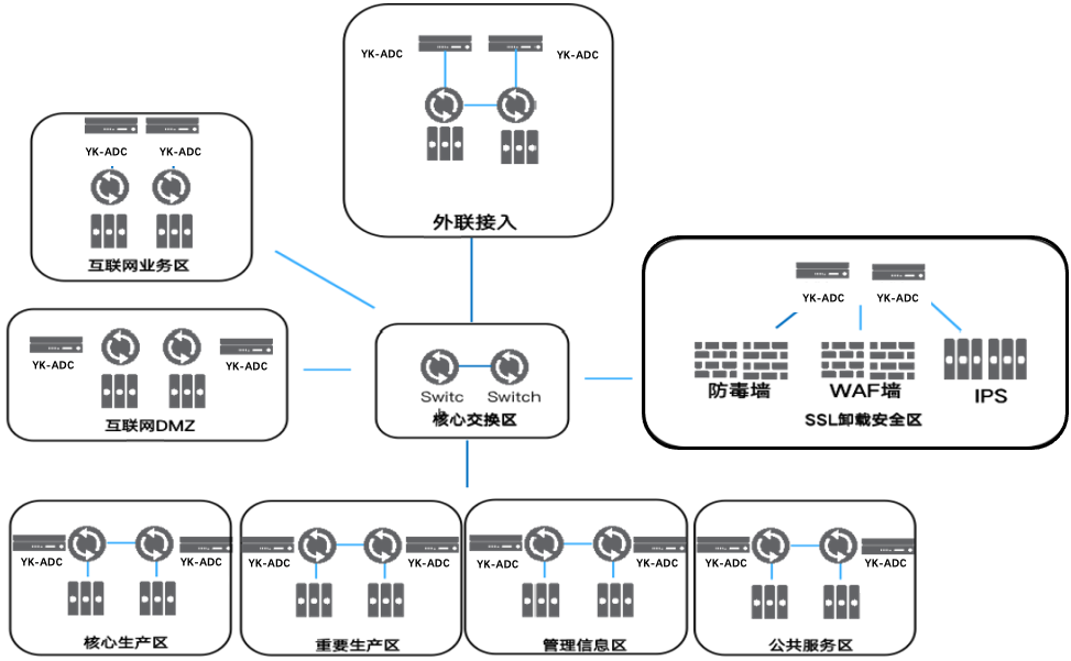 2、網(wǎng)銀接入LLB+GSLB結合,完美解決進站出站流量多鏈路負載、雙中心智能調(diào)度,智能聚合多條運營商鏈路,整合雙中心應用系統(tǒng)資源