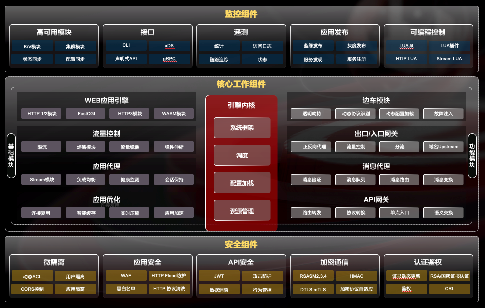 李剛強調(diào),“OpenNJet 充分吸收了開源生態(tài)的優(yōu)秀擴展模塊 ,在功能規(guī)劃上包含了5大類18類組件,特別是隨著安全威脅的快速增加,規(guī)劃了安全組件。除安全功能外,‘企業(yè)特性’也是OpenNJet關注的重點領域,如內(nèi)置的高可用性,自動化的集群發(fā)現(xiàn)及配置同步等?!?/p>