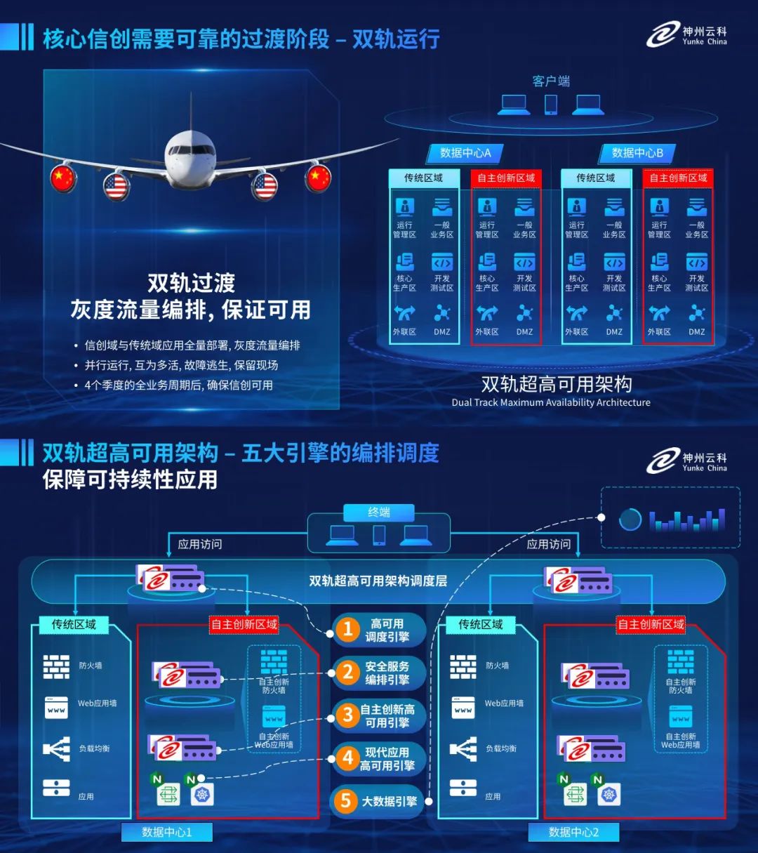 為助力金融業(yè)務(wù)高質(zhì)量發(fā)展,更好地應(yīng)對(duì)數(shù)字經(jīng)濟(jì)時(shí)代對(duì)可持續(xù)性的高要求,實(shí)現(xiàn)“信創(chuàng)”與“數(shù)字化”齊頭并進(jìn),leyu.樂(lè)魚創(chuàng)新性的推出了核心信創(chuàng)·雙軌過(guò)渡的超高可用架構(gòu)。該架構(gòu)在雙活數(shù)據(jù)中心的分區(qū)調(diào)度基礎(chǔ)上,增加信創(chuàng)域和非信創(chuàng)域的分域調(diào)度,實(shí)行信創(chuàng)域與傳統(tǒng)域應(yīng)用全量部署,使雙中心運(yùn)營(yíng)變?yōu)殡p中心四區(qū)域并行運(yùn)行,互為多活,將“0到1”的單軌建設(shè)道路變?yōu)榉謪^(qū)分域協(xié)同的多活雙軌超高可用架構(gòu)。幫助客戶在新架構(gòu)下,保障“信創(chuàng)”的同時(shí)解決性能瓶頸,提升穩(wěn)定性,保證應(yīng)用可持續(xù)性,最終實(shí)現(xiàn)信創(chuàng)區(qū)域和非信創(chuàng)區(qū)域的平滑過(guò)渡,完成國(guó)產(chǎn)化替代目標(biāo)。