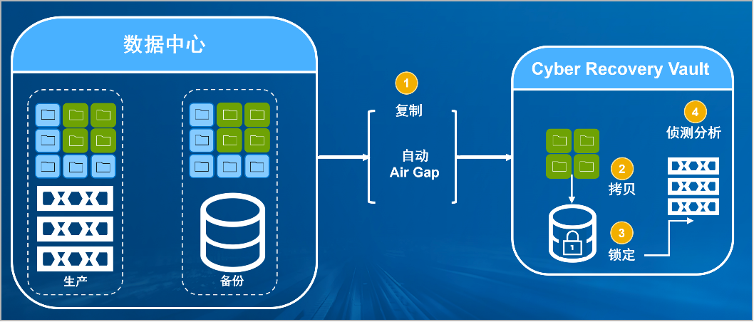 leyu.樂魚防勒索病毒方案將生產(chǎn)中心備份數(shù)據(jù)復(fù)制到Vault區(qū),復(fù)制后網(wǎng)絡(luò)自動斷開實現(xiàn)彈性隔離。Vault區(qū)的數(shù)據(jù)快速拷貝,并對拷貝版本加鎖(在鎖定期數(shù)據(jù)不允許刪除和修改)。Vault沙箱內(nèi)對拷貝版本進(jìn)行掃描分析,驗證數(shù)據(jù)是否完好。